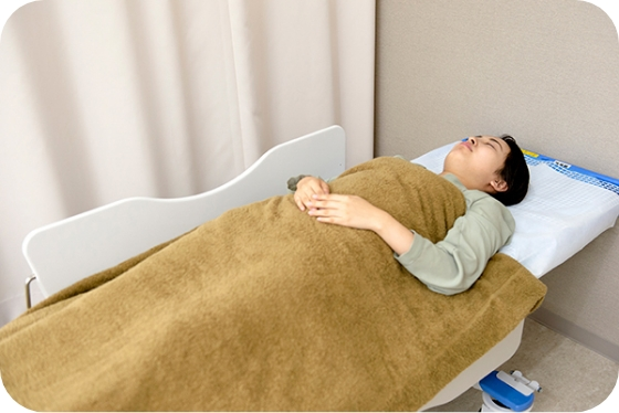 胃カメラ検査後は、30分から1時間(個人差が大きいです)ほどベッドでお休みいただいた後、気分や目覚めの程度を確認します。